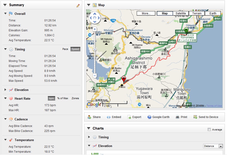 そして、スタート後、ターンパイクの入り口の坂がキツいので、自分の一番軽いギアである39×25で登り始めたが、一向に坂がゆるくならず、心拍は常に180オーバだったので、とにかく心拍を180以下にして走ることしか考えていなかった。
