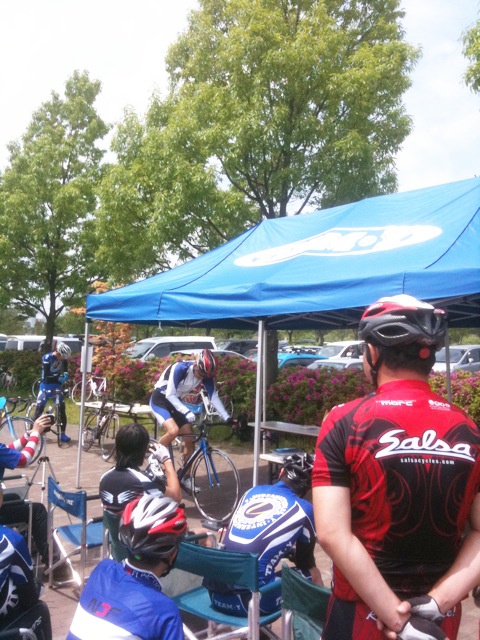 ■到着したときに、ローラ台を使ったペダリングレクチャーをしていました。