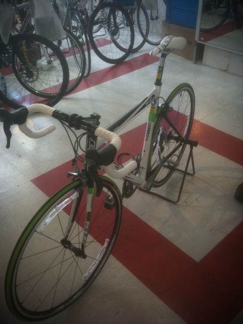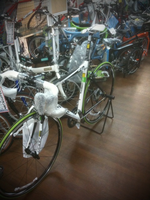 帰りに、自転車屋に寄ってFELT F4の装備を店員さんと一緒に決める。