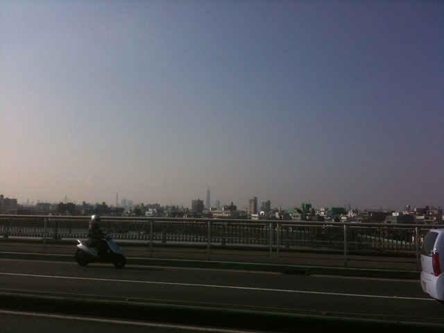 ■江戸川?を渡る途中、右手にスカイツリーが!