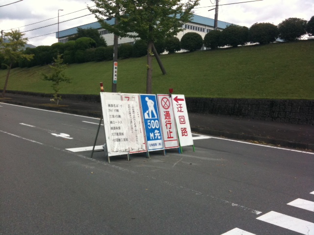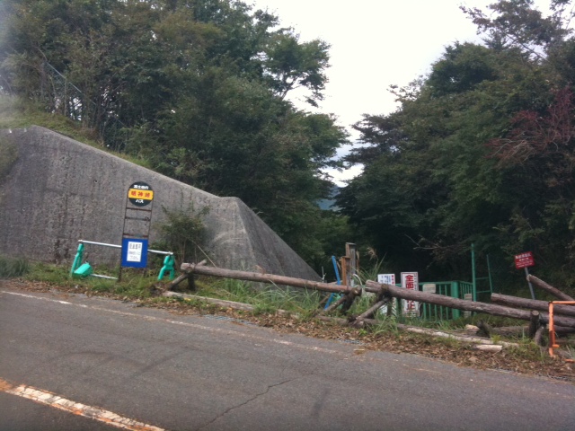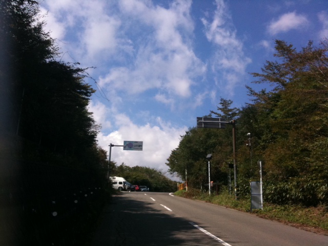 富士スピードウェイの東門を通過し、台風の爪痕が随所に残る中、いよいよ明神峠の入り口となる県道147号線の交差点に来ました。来るまでにここの情報を見ずに来たので気楽に登ります。