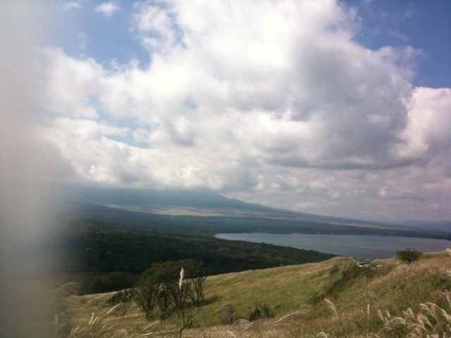 震えながらもビューポイントに到達。汗を拭き富士山を眺めるも雲に覆われていた。残念。