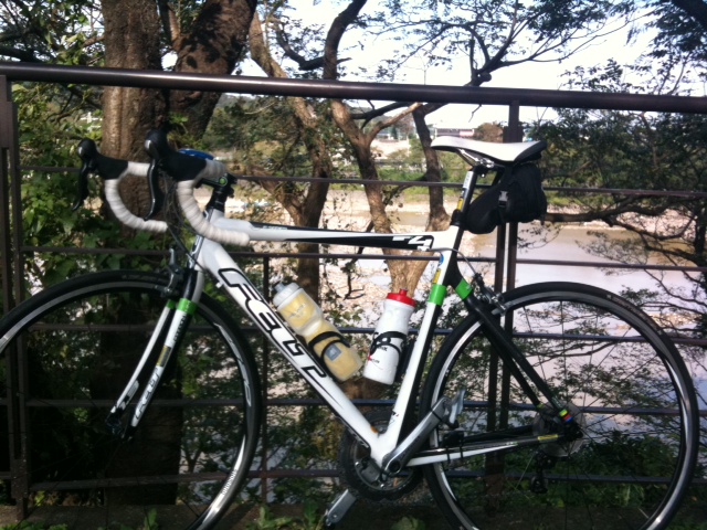 着替えて自転車を輪行袋から出して準備完了。気温は日差しが無いと肌寒いくらいです。