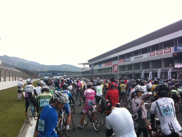 試走は7時~7時45分なので1周走れば良いとゆとりがあったが、実は出走可能時間が7時半までだった。気付いた時には既に遅く、走ろうにもあと10mの所で無常にもゲートは閉じられてしまいました(T_T)