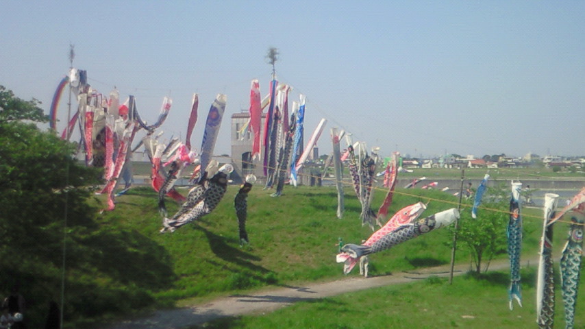■帰りは多摩川サイクリングでLSD。せせらぎ館には鯉のぼりが!春だねぇ。