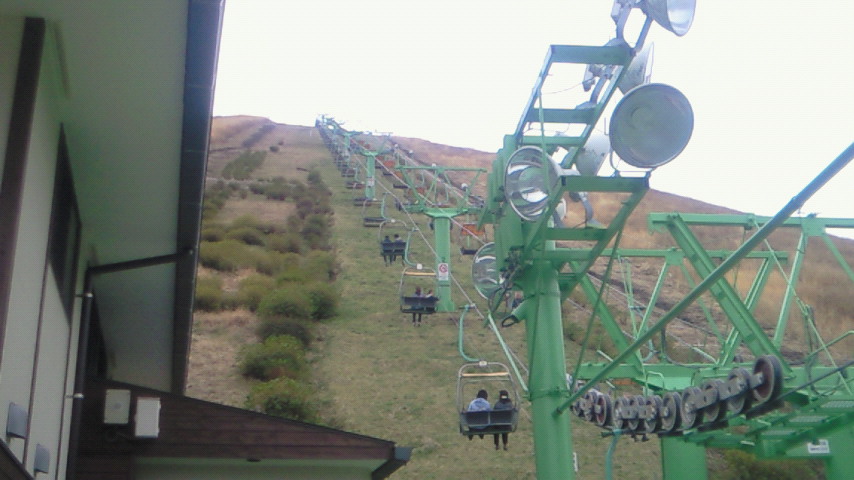 リフトで山頂へあがるも凄い風!。