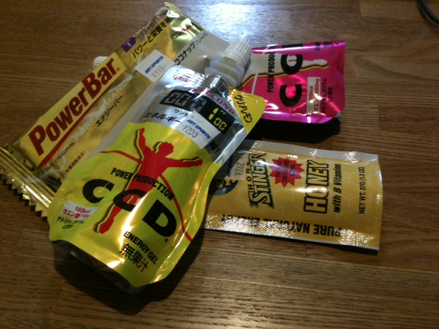 今回は、ボトル2本(CCD1本、水200mm)とパワーバーなど補給食を持ち過ぎないようにしました。