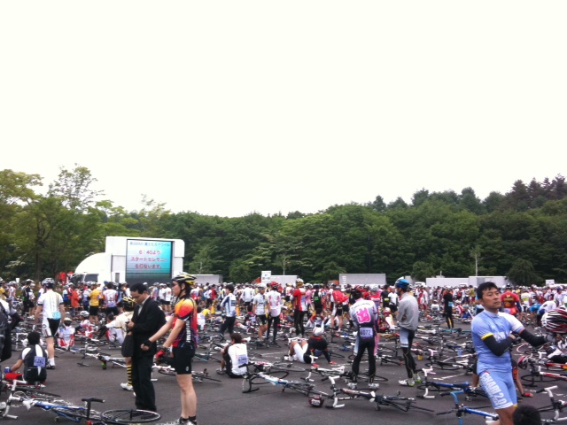 朝、5時起床、おにぎり2個食べて6時に会場入り。当日は曇り。