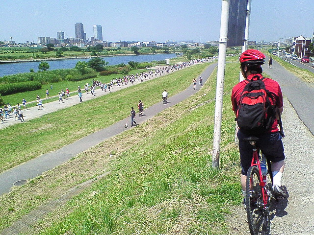 しかし、多摩川に入った瞬間、いきなりマラソン大会と遭遇!